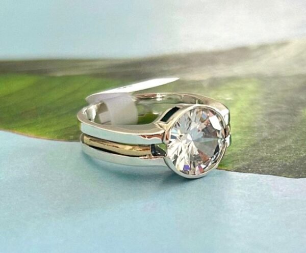 Descubre la excelencia en joyería en nuestra tienda y adquiere este anillo solitario de plata y oro para agregar un toque de distinción a tu colección personal. Cada joya que ofrecemos es más que un accesorio; es una obra de arte que cuenta una historia única y refleja la belleza atemporal de la verdadera artesanía.