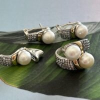 El set «Augusta» con perla es una sinfonía visual de elegancia y refinamiento. Las perlas, conocidas por su atemporalidad y su asociación con la sofisticación, se entrelazan con gracia en diseños que capturan la esencia de la feminidad. La plata y el oro, combinados con habilidad, crean una paleta de colores que resalta la luminosidad de las perlas. Cada pieza está meticulosamente elaborada, desde la selección de perlas de la más alta calidad atención hasta el detalle a los acabados, creando joyas que destacan por su calidad y diseño distintivo.