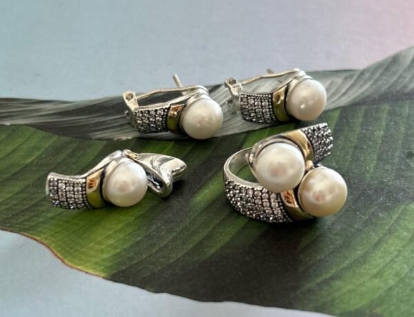Fábrica de joyas, donde la artesanía excepcional se combina con la belleza atemporal en nuestro exquisito set Augusta con perla, diseñado exclusivamente para destacar la elegancia y sofisticación. Cada pieza de este conjunto es una obra maestra única, creada con pasión y dedicación, rindiendo homenaje a la atemporalidad de las perlas y la fusión elegante de la plata y el oro. Inspirado por la gracia y la feminidad, el conjunto «Augusta» se convierte en una declaración de estilo que trasciende las tendencias efímeras.
